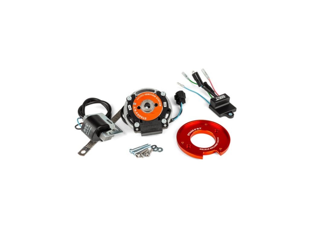 Rotor zapalování nemá drážku pro klínek a je určen pro klikové hřídele s malým kuželem (elektronické zapalování). Stage6 R/T MK2 je závodní zapalování a neposkytuje napájení pro světla ani vodní pumpu, pro napájení elektroinstalace je potřeba baterie. Doporučuje se závodní zapalovací svíčka a vypínač zapalování pro jeho vypnutí. Je nutné zajistit zemnění mezi motorovým blokem a rámem. Kompletní pokyny pro montáž a nastavení vnitřního rotorového zapalování jsou uvedeny v návodu k obsluze.