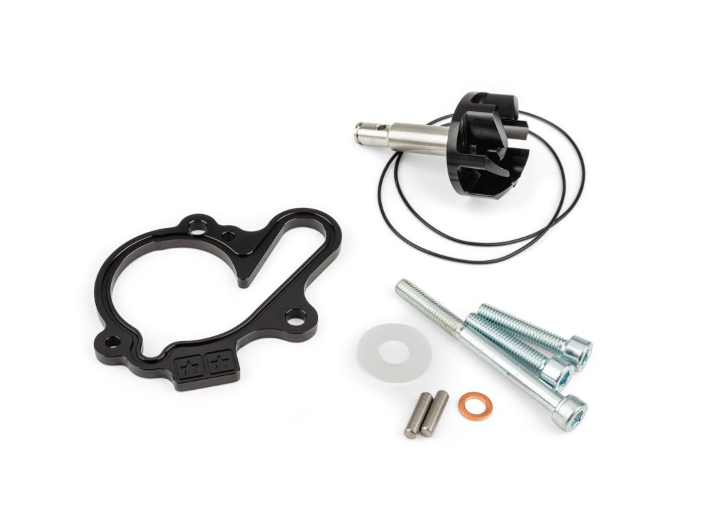 Zabránění přehřívání je zásadní zejména u upravených 50 ccm motorů. Instalace vodní pumpy Stage6 s velkým průtokem pro AM6 může výrazně zlepšit chladicí systém motoru. Sada obsahuje barevně eloxovanou podložku pod přírubu víka, hnací hřídel, oversize oběžné kolo vodní pumpy, O-kroužky a šrouby. Základní deska pro víko je k dispozici v různých barvách, aby bylo možné stroj vylepšit nejen výkonově, ale i vizuálně.