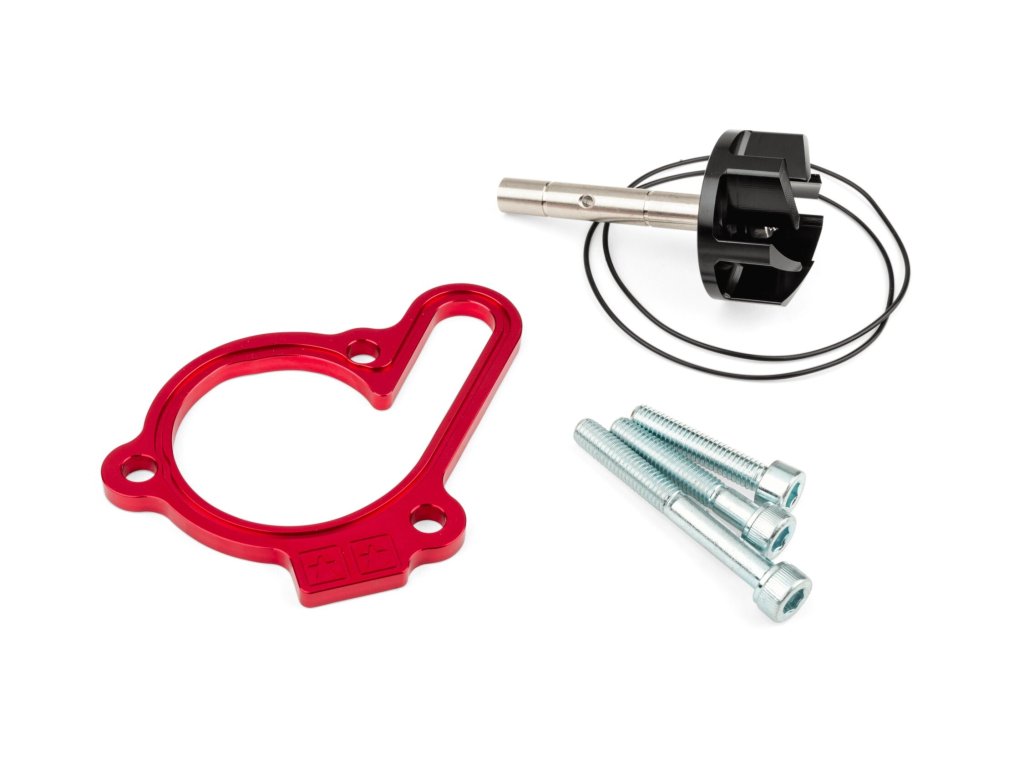Prevence přehřívání je zásadní zejména u laděných 50 ccm motorů. Montáž vodní pumpy Stage6 s velkým průtokem pro Derbi může výrazně zlepšit chladicí systém. Sada obsahuje barevně eloxovanou podložku pod přírubu krytu, hnací hřídel, oversize oběžné kolo, O-kroužky a šrouby. Základní deska krytu je dostupná v různých barvách, takže lze stroj vylepšit výkonově i vizuálně.