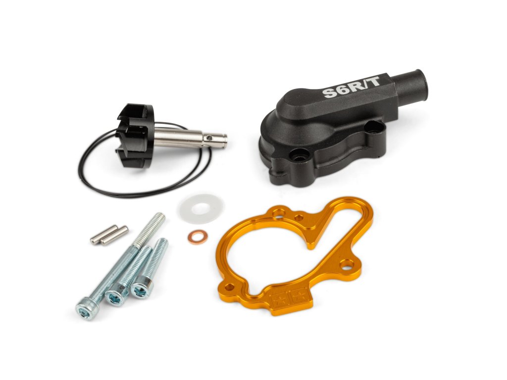 Stage6 R/T vodní pumpa se zvýšeným průtokem včetně víka pro AM6. Vysokovýkonná mechanická vodní pumpa pro Minarelli AM6 výrazně zlepšuje chlazení při zachování mechanického pohonu. Zabránění přehřívání je zásadní zejména u upravených 50 ccm motorů. Montáž této pumpy s vysokým průtokem může podstatně zlepšit chladicí systém. Sada obsahuje barevně eloxovanou základní desku pod víko, hnací hřídel, oversize oběžné kolo, CNC víko vodní pumpy, O-kroužky a šrouby. Základní deska je dostupná v různých barvách pro sladění vzhledu i výkonu.