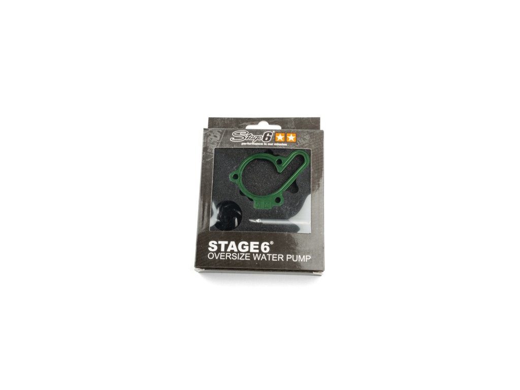 Zabránění přehřívání je u upravených 50 ccm motorů zásadní. Instalace vodní pumpy Stage6 s velkým průtokem pro Derbi může výrazně zlepšit chladicí soustavu. V balení najdete barevně eloxovanou podložku pod přírubu víka, hnací hřídel, oversize oběžné kolo vodní pumpy, O-kroužky a šrouby. Základní deska víka je dostupná v různých barvách, takže lze vylepšit výkon i vzhled stroje.