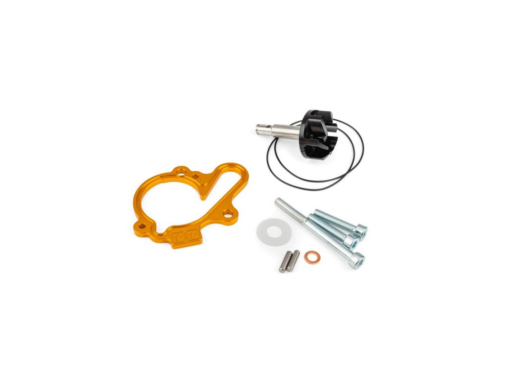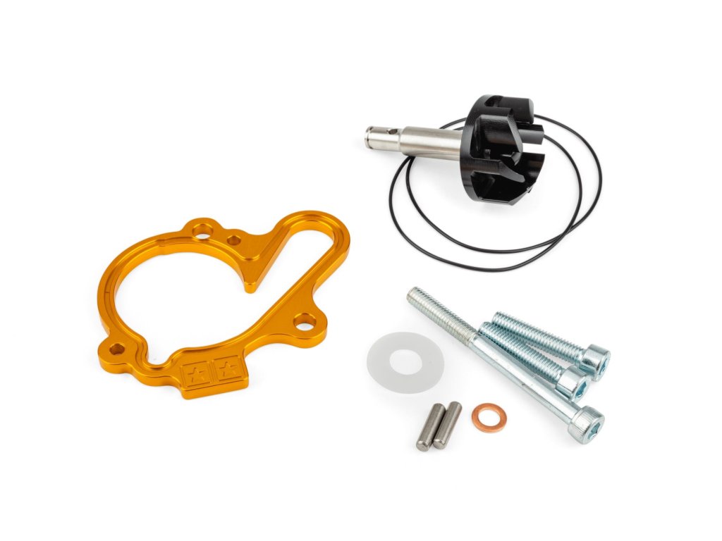 Zabránění přehřátí je obzvlášť důležité u upravených 50 ccm motorů. Montáž vodní pumpy Stage6 s velkým průtokem pro AM6 může výrazně zlepšit chladicí systém motoru. Sada vodní pumpy obsahuje barevně eloxovanou podložku pod přírubu víka, hnací hřídel, oversize oběžné kolo vodní pumpy, O‑kroužky a šrouby. Základová deska víka je k dispozici v různých barvách, aby bylo možné vyladit stroj nejen výkonově, ale i vizuálně.