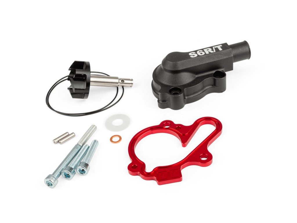Zabránění přehřívání je zásadní zejména u laděných 50 ccm motorů. Montáž vodní pumpy Stage6 s vysokým průtokem pro Derbi může výrazně zlepšit chladicí výkon motoru. Sada obsahuje barevně eloxovaný spacer pro víčko, hnací hřídel, oversize oběžné kolo, CNC víčko vodní pumpy, O-kroužky a šrouby. Základní deska víčka je dostupná v různých barvách pro sladění výkonu i vzhledu.
