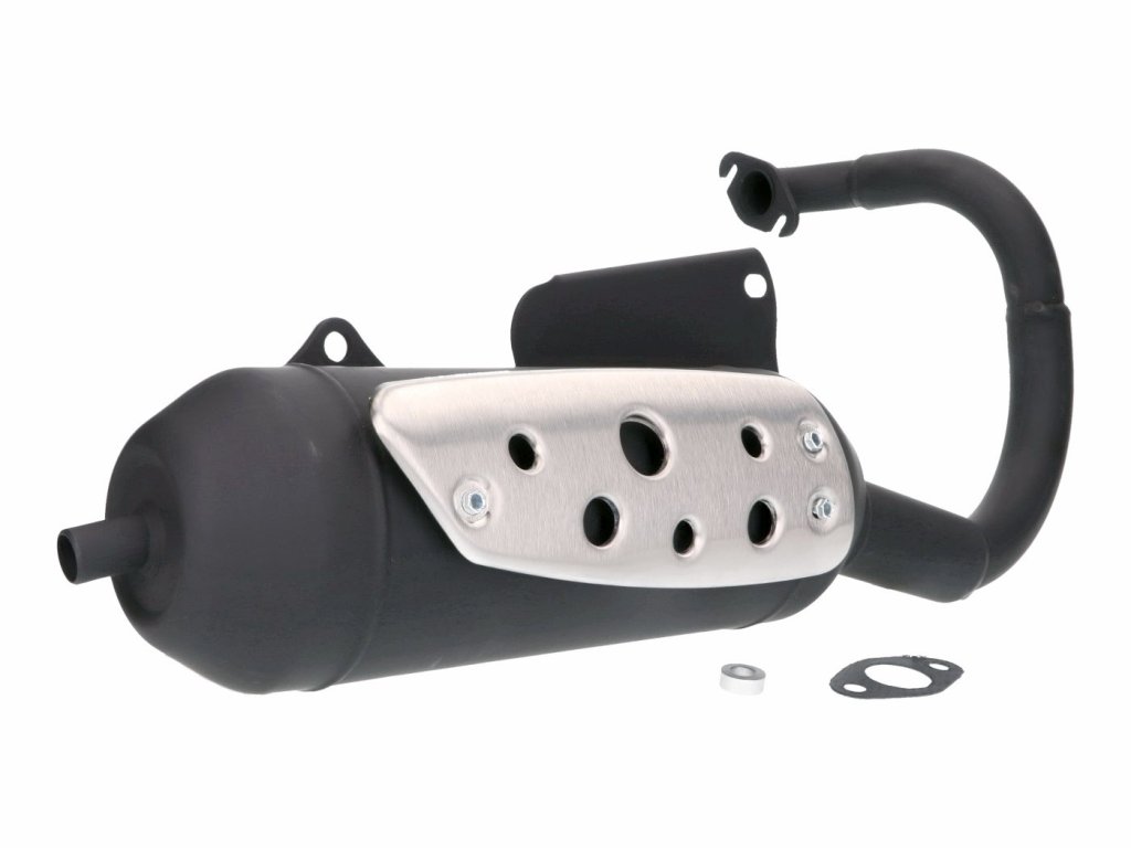 Černý výfuk vhodný pro skútry Peugeot Speedfight 3 a 4 Euro 2, Tweet a Vivacity, a také SYM Fiddle 2, Jet, Orbit 2 a Symphony.
