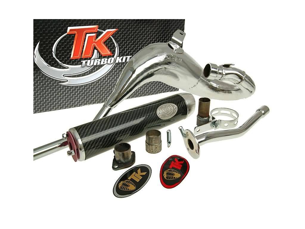 Výkonný tuningový výfuk Carreras 80 chrom od španělského specialisty Turbo Kit. Výfuk je určený pro motory Minarelli AM. Jedná se o kvalitní výfuk, který je speciálně navržen pro válce o objemu 80 ccm a je pravděpodobně jedním z nejvýkonnějších výfuků v této třídě. Výfuk je chromovaný s hliníkovou koncovkou.