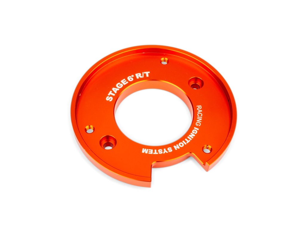 Základní deska pro Stage6 R/T vnitřní rotorové zapalování – základní deska zapalování typu PVL pro mopedy Peugeot 103. Deska je vyrobena z hliníku a dodává se v pro Stage6 typické oranžové barvě. Umožňuje bezpečné upevnění zapalování na skříň motoru. Náhradní díly Stage6 jsou prodávány samostatně a jsou dostupné v našem shopu.