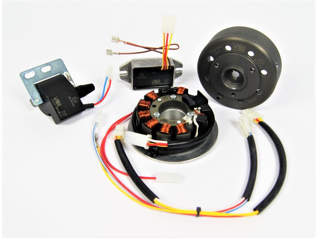 Tato souprava je určena jako náhrada kompletní zdrojové a zapalovací soustavy včetně alternátoru pro motory Simson S50, 51, 70, SR50, 80.