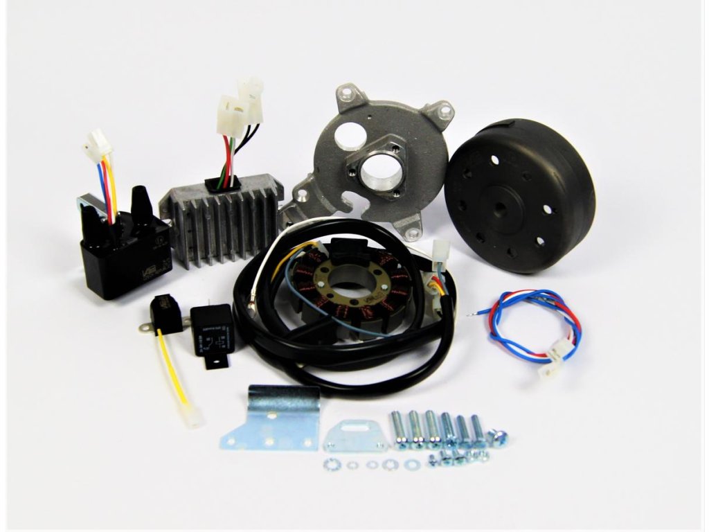 Tato souprava je určena jako náhrada 12V tří fázového alternátoru, nebo 12V jednofázového alternátoru. Nahrazuje kompletně zdrojovou i zapalovací soustavu, tedy včetně alternátoru.
