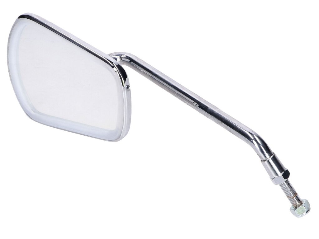 | Univerzálně vhodné pro Zündapp, Kreidler, Hercules, Puch, Simson Mofa, Moped, Mokick se závitem M8 × 26 mm. Rozměry: hlava zrcátka cca 115 × 90 mm, rameno cca 170 mm. |