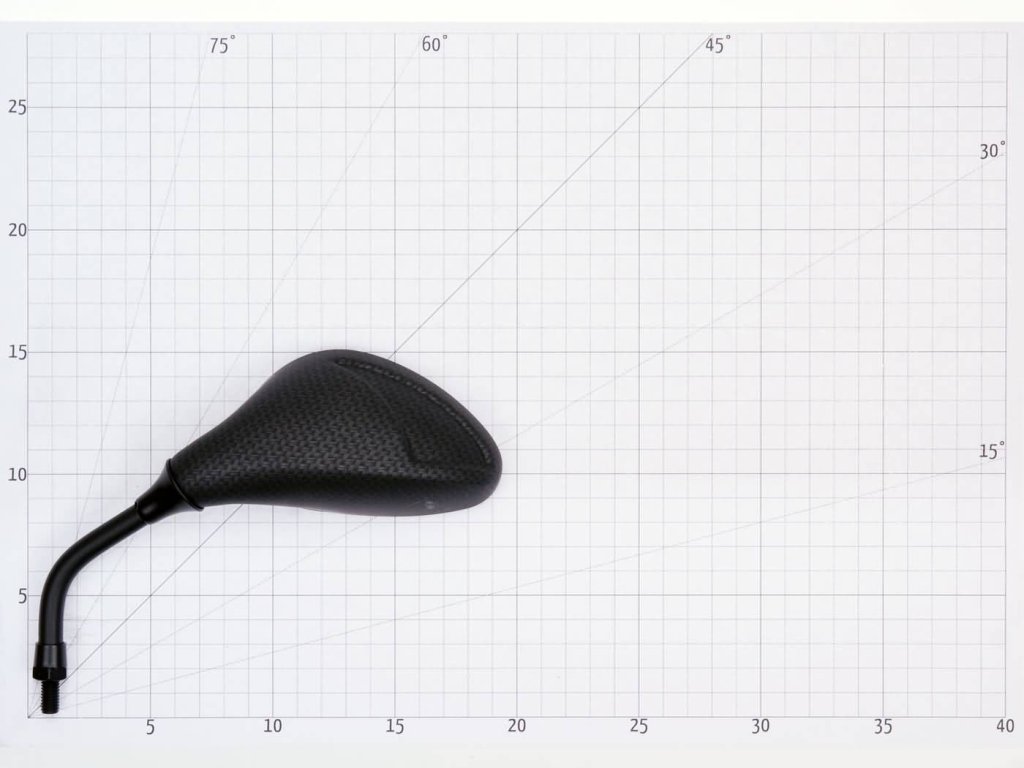 Zrcátko Flash v karbonovém provedení je na levou stranu. Zrcátko má krátký závit M8. Plocha zrcadla: 130x68 mm.Doplňkové parametry